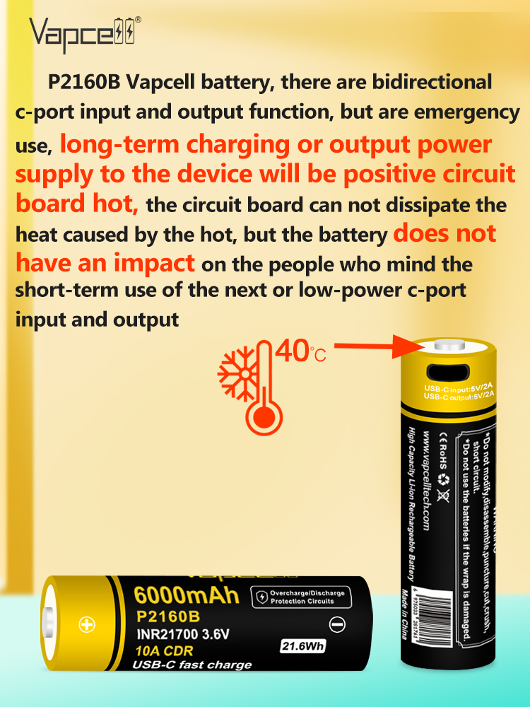 Vapcell P2160B 21700 6000mah 10A USB-C